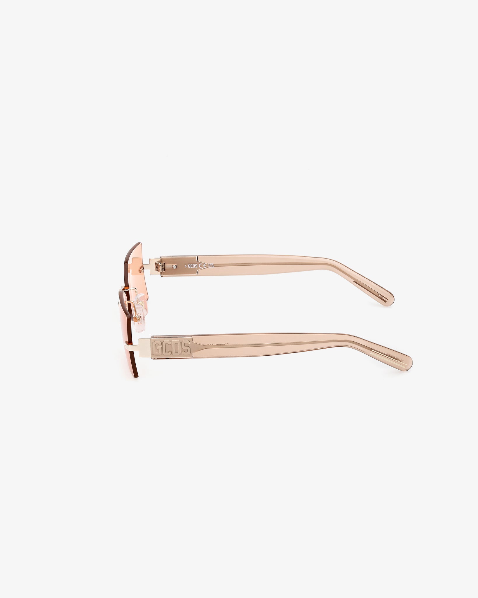 GD0033 - Style caratterizzato da una forma rettangolare. Le aste in metallo sono impreziosite dall'iconico logo GCDS e dalle punte in acetato.