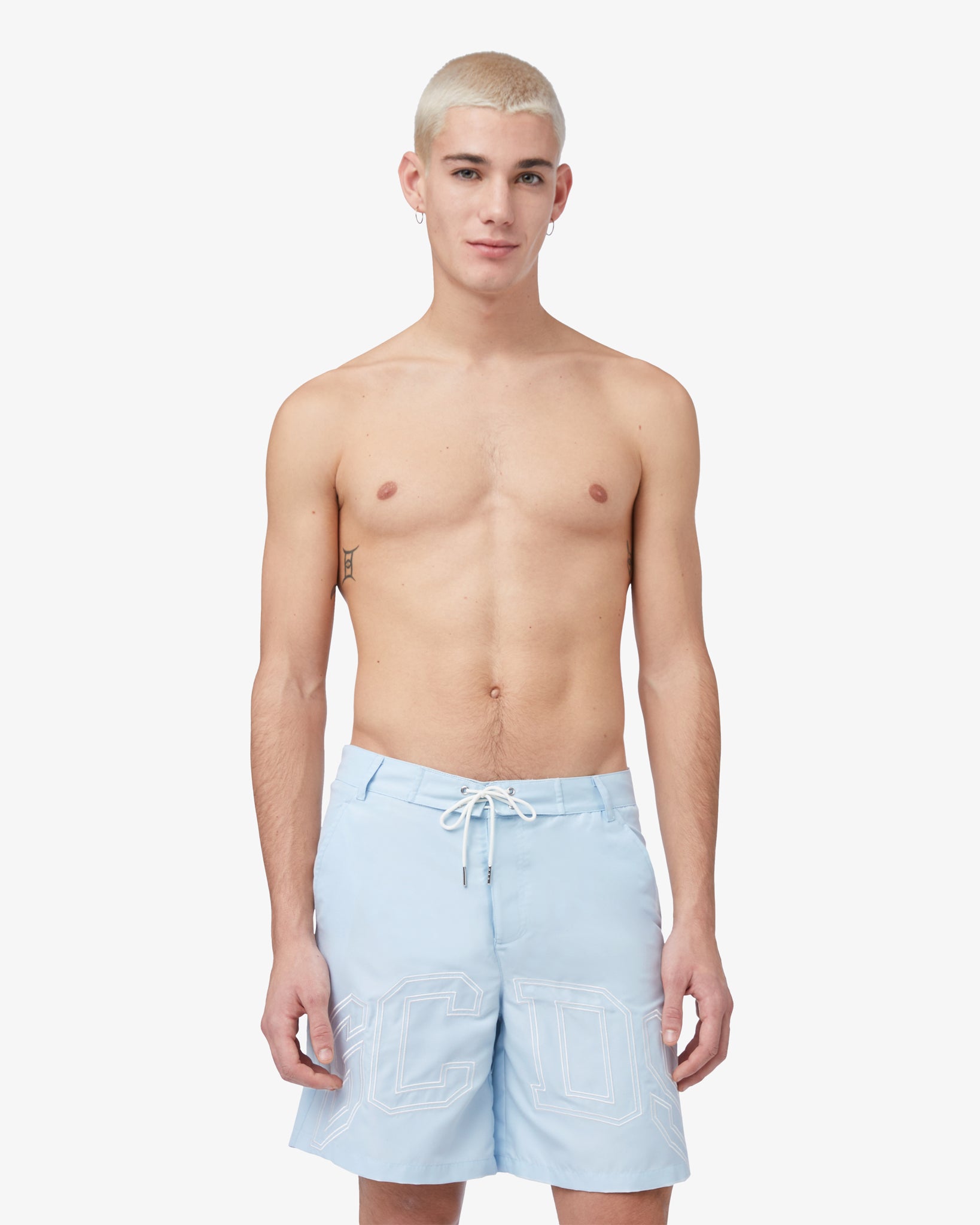 Swimsuit with "GCDS Lounge" logo on the front. Adjustable elastic waistband with drawstring. On the back, patch pocket detail and GCDS logo label in jacquard.