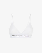 Triangular cotton rib knit top with Gcds Wear Milano logo elastic at bottom.