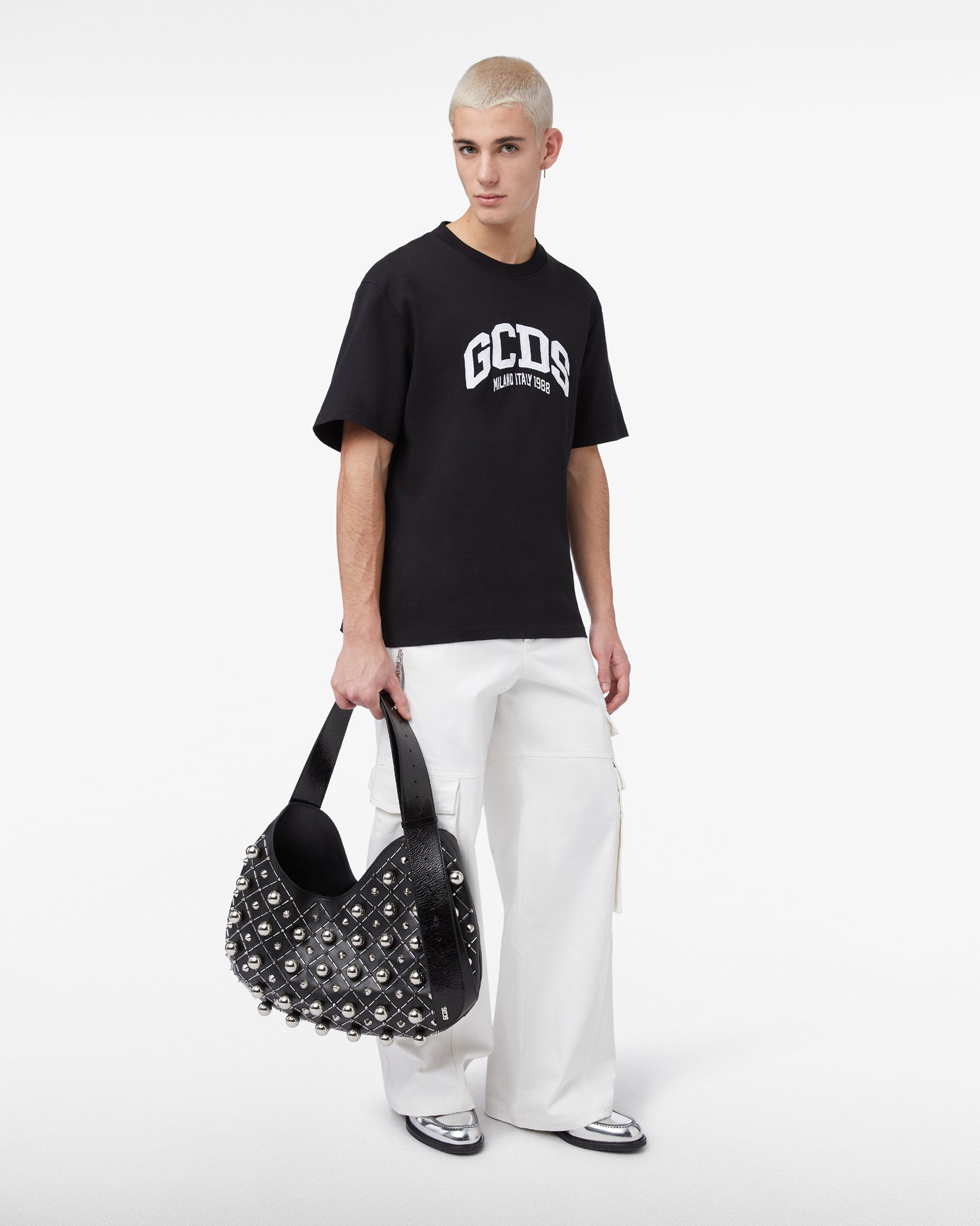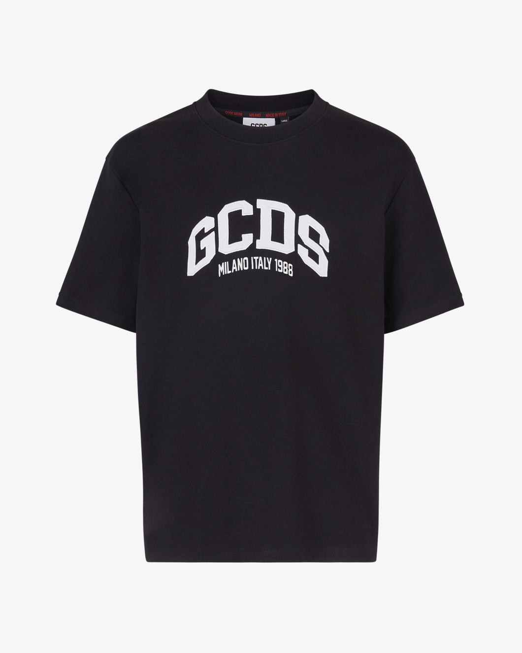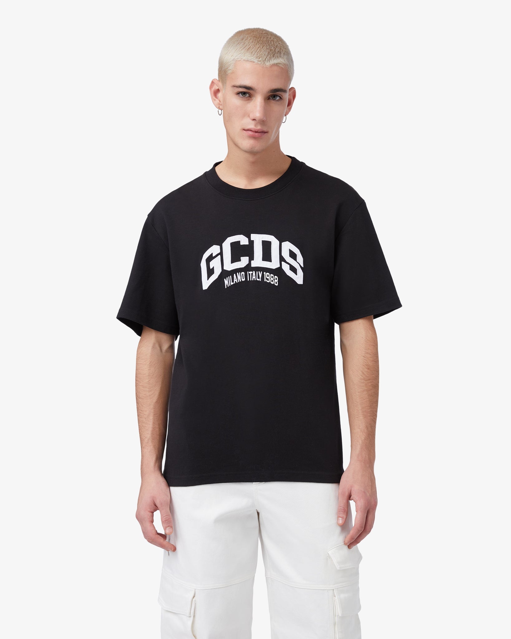 Cotton T-shirt with round neck and short sleeves. Featuring an embroidered "GCDS Lounge" logo applied on the front.