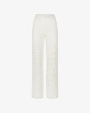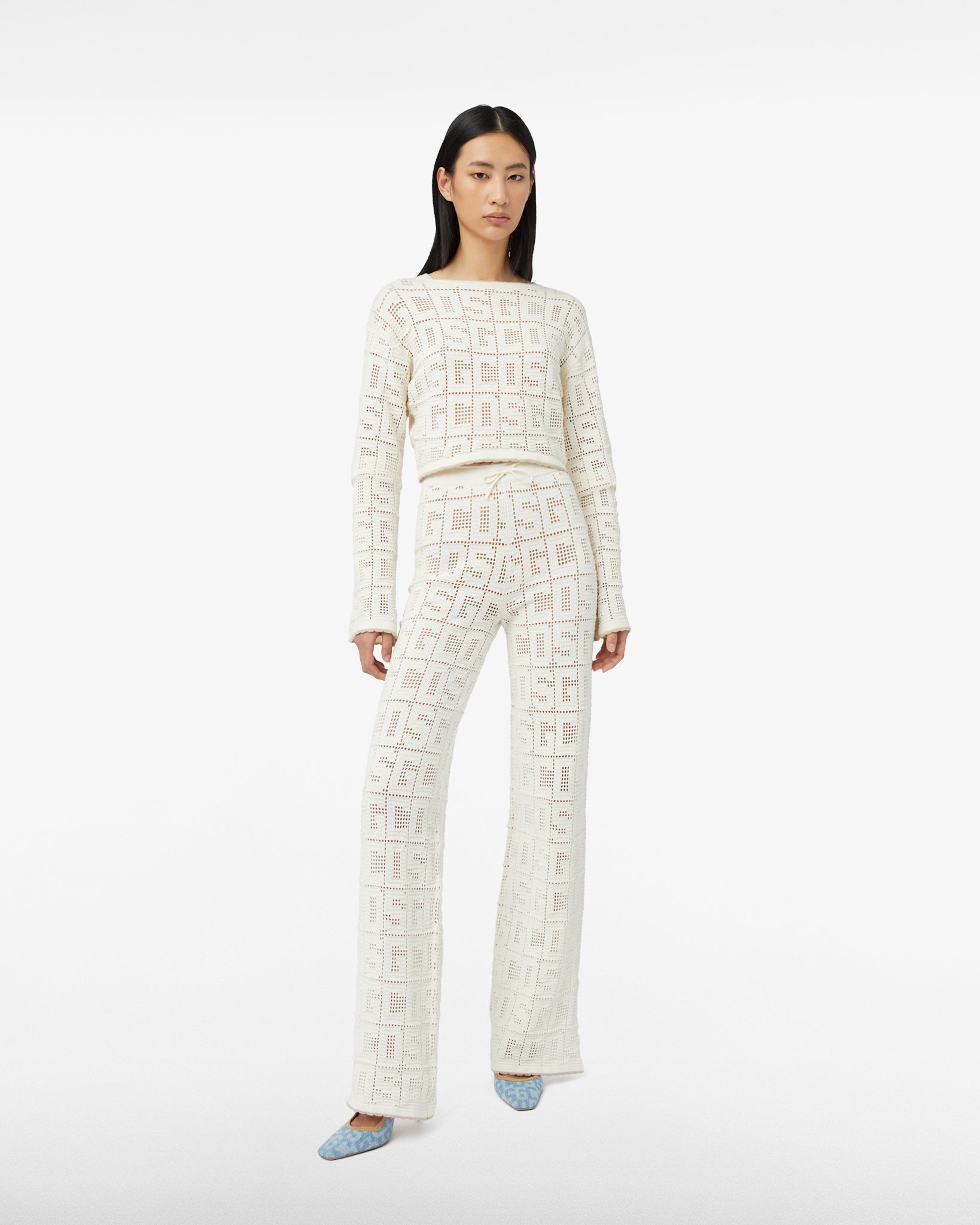 Cotton trousers with GCDS monogram crochet see-through effect. Drawstring waistband. Contrasting cloud stitch trim. Side slits. Wide fit.