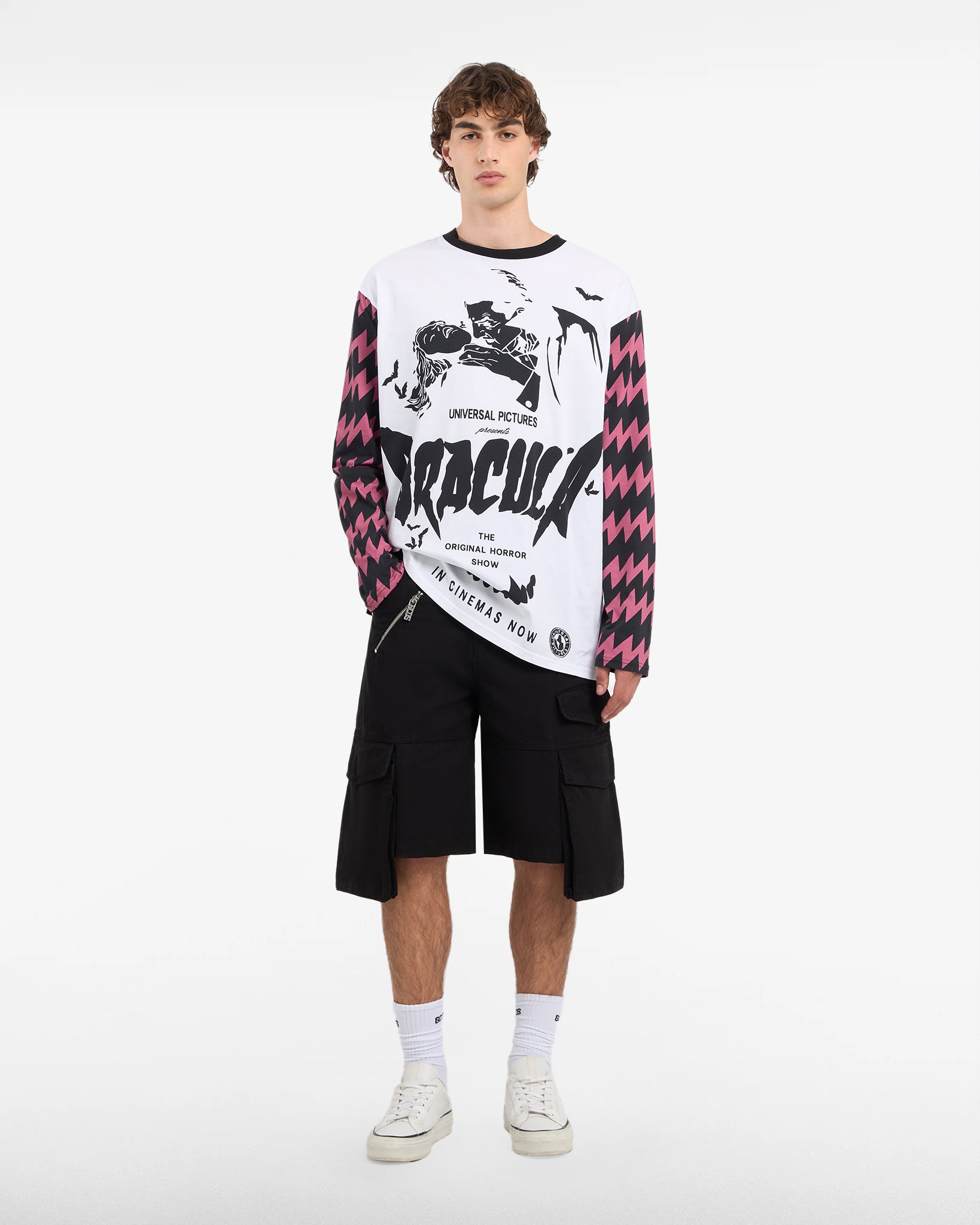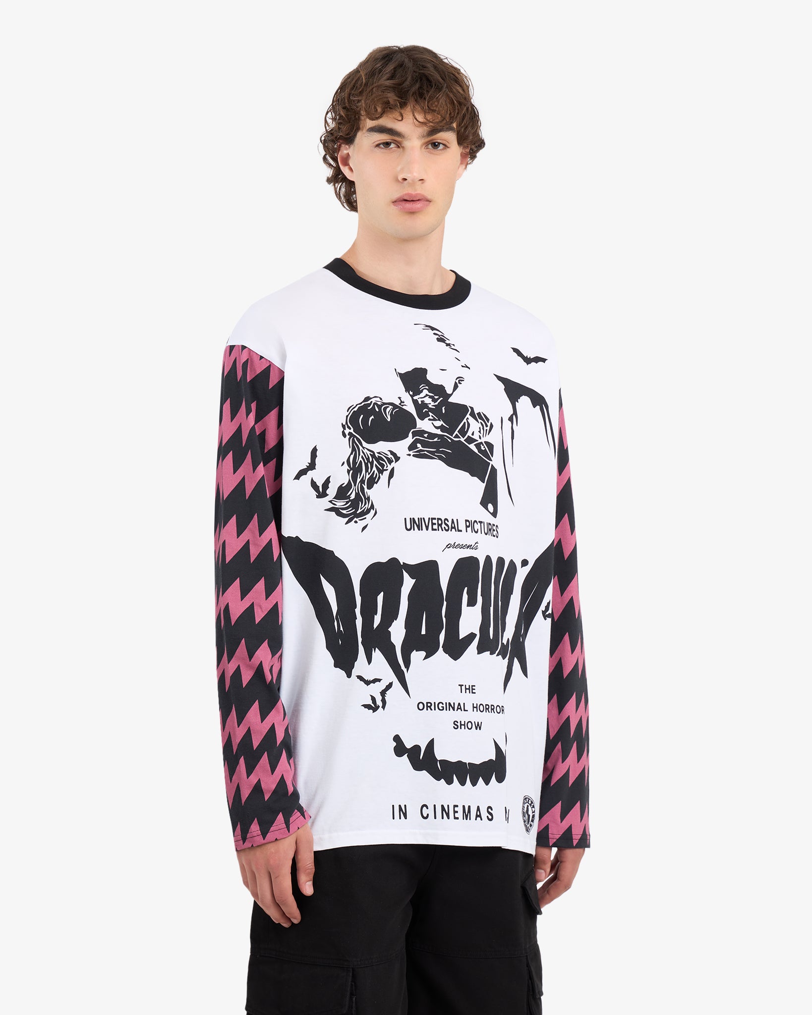 Skip to contentLong sleeves t-shirt featuring a mix of digital and screen printing of Dracula.