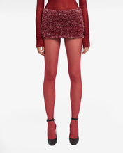20 denier tights with a back seam, garter detail, and contrasting logo.