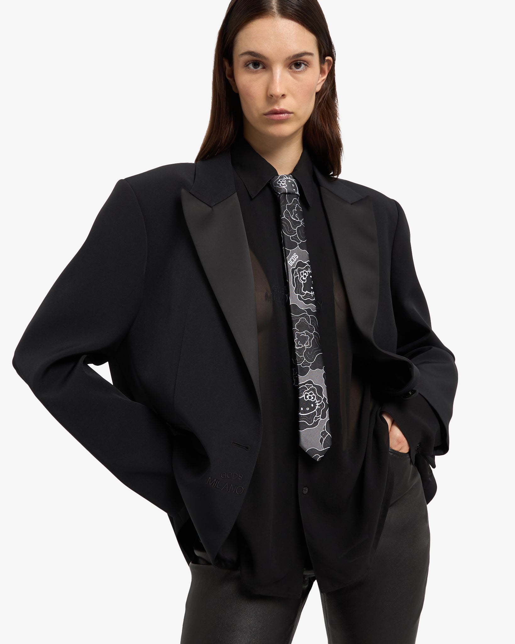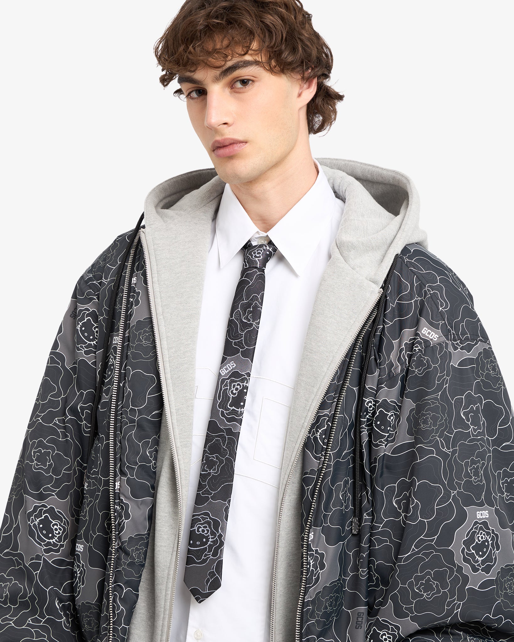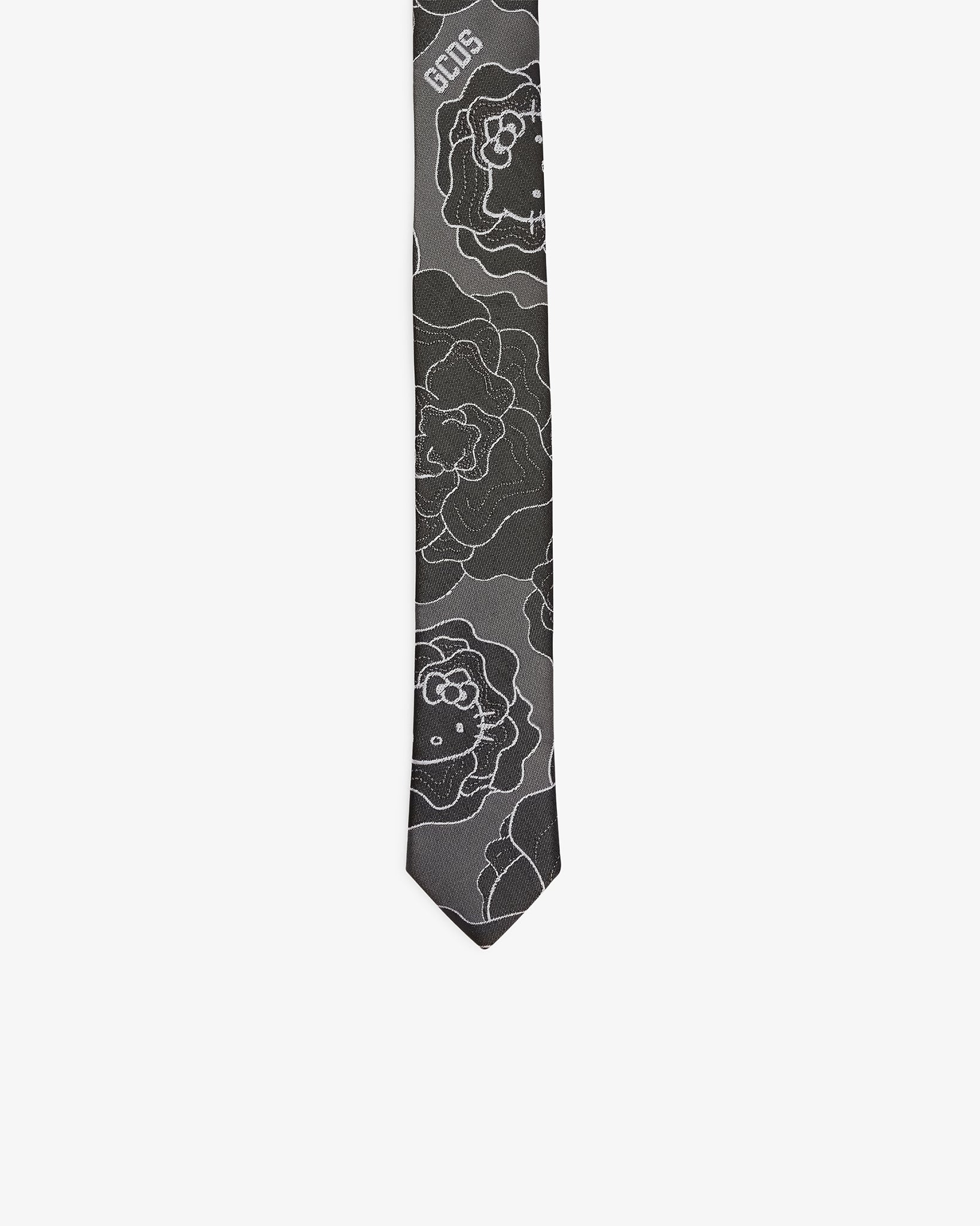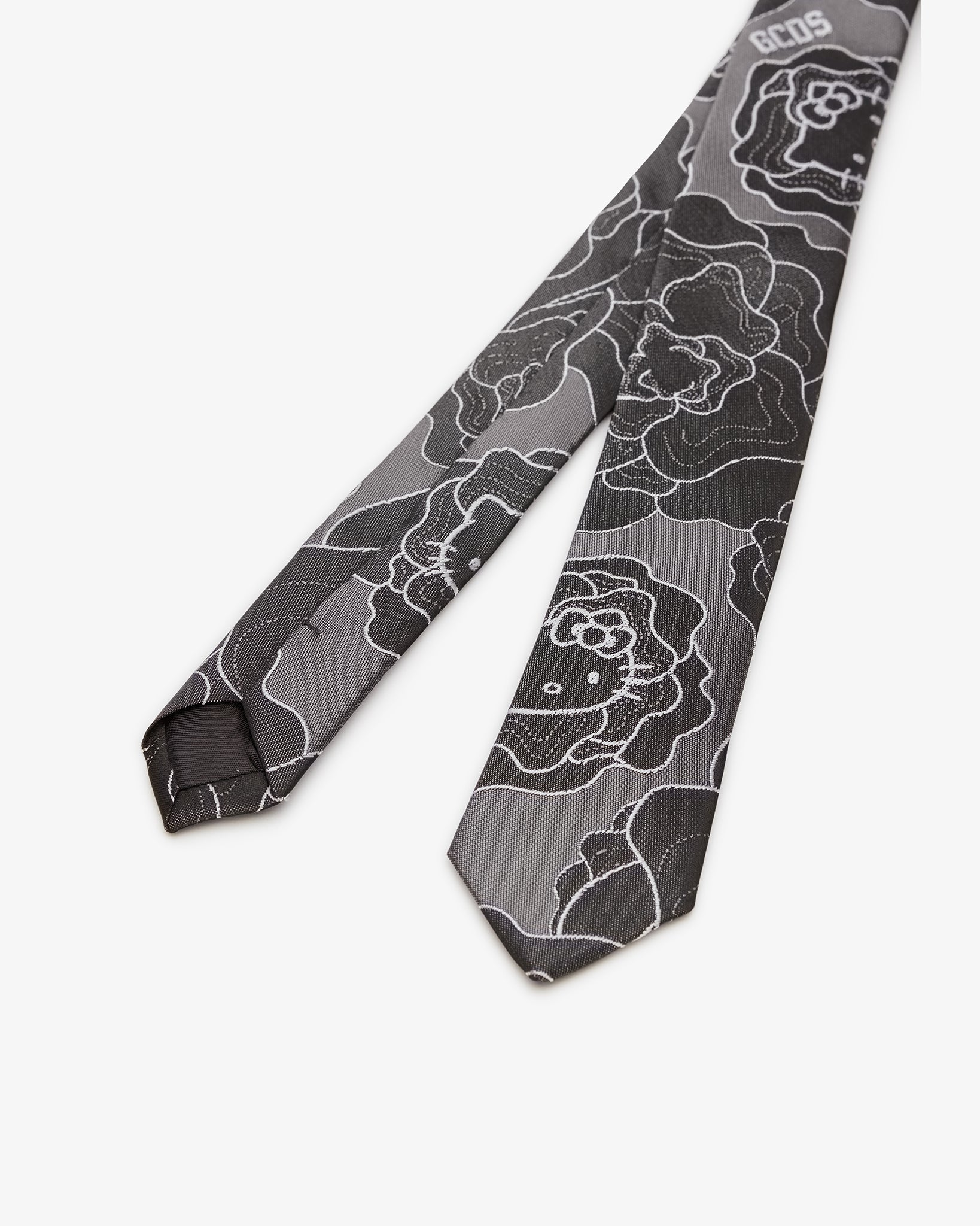 Jacquard fabric tie with floral pattern depicting Hello Kitty.