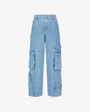 Skip to contentUltracargo stonewashed denim trousers with light bleached effect and tobacco-colored contrast stitching. Side cargo pockets and logoed back patch. Adjustable bottom with side buckles. Front zipper and stud button closure.