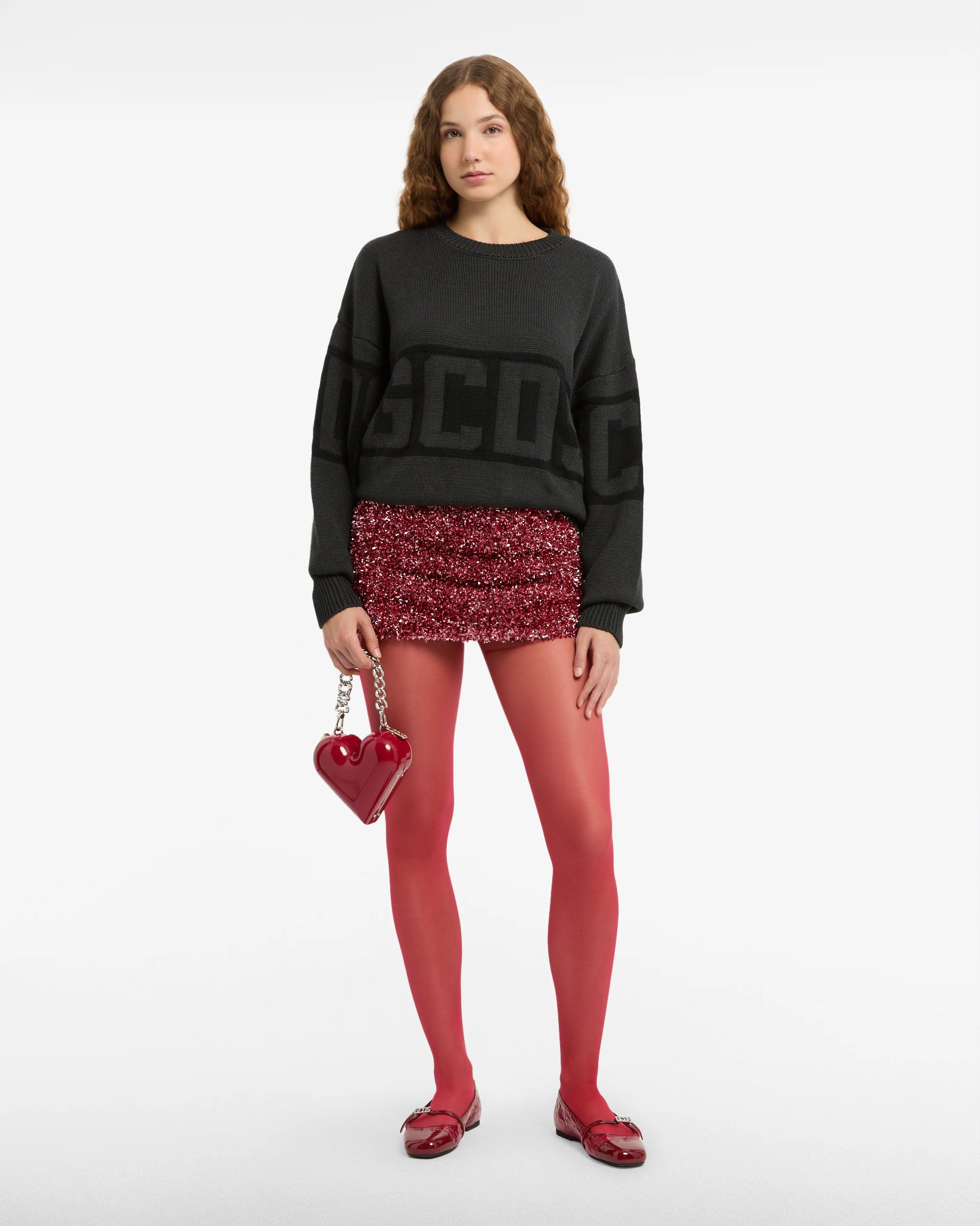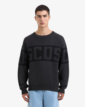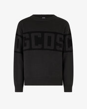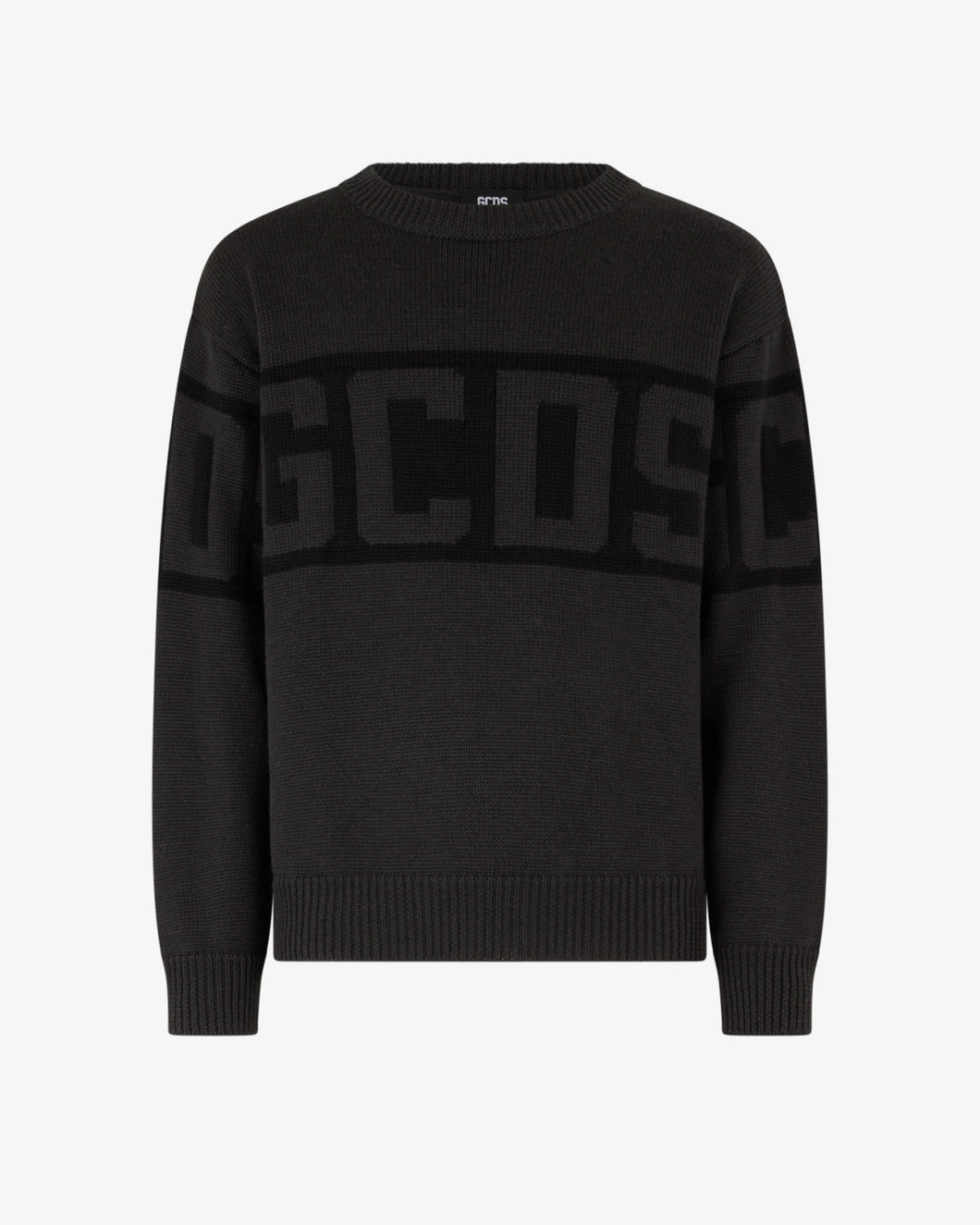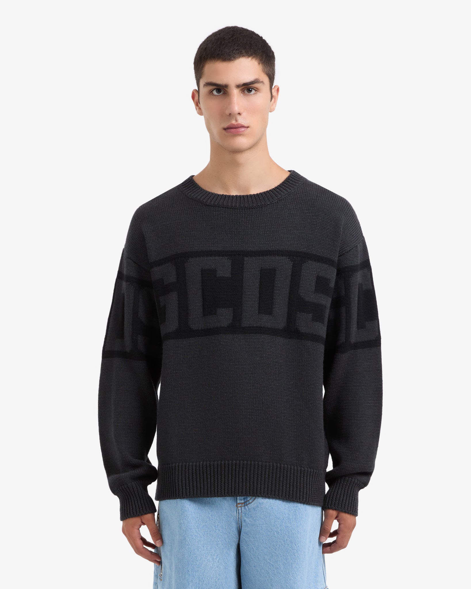 Wool-blend crewneck sweater made in shaved knit. Inlaid logo band on front, back and sleeves. Regular fit.