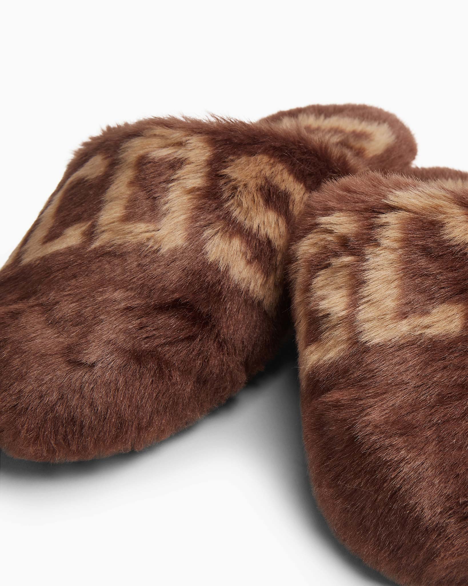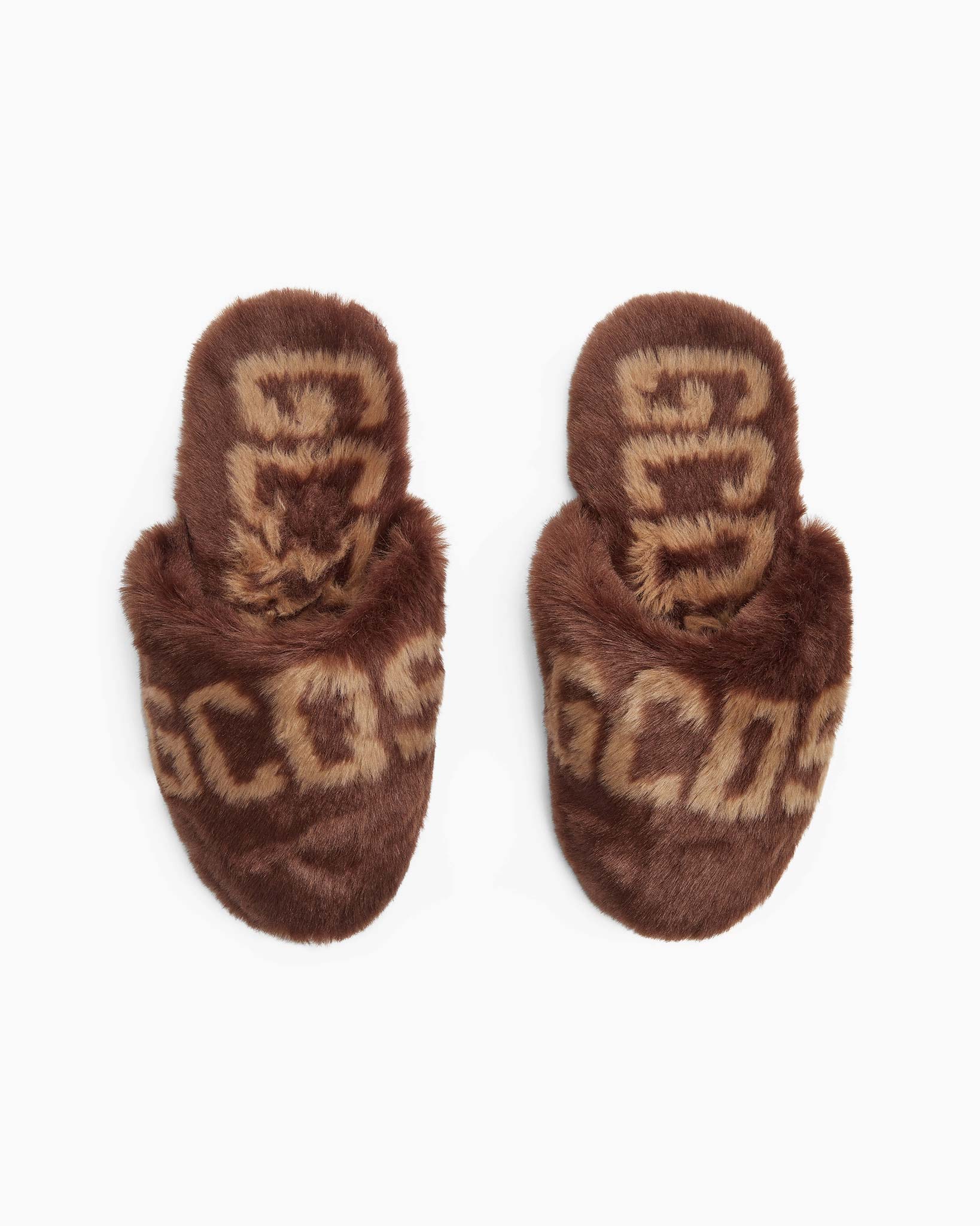 Slippers with GCDS faux fur vamp. Faux fur logoed lining and insole for warmth and comfort. Natural rubber sole. Round toe.