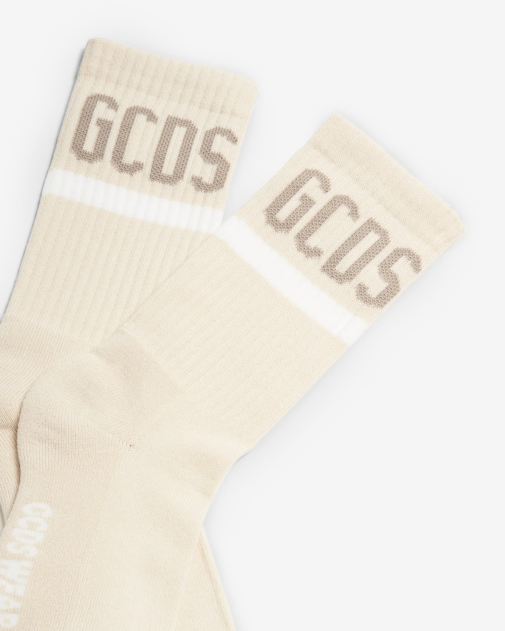 Cotton blend socks with inlaid GCDS logo and contrasting linear artwork.