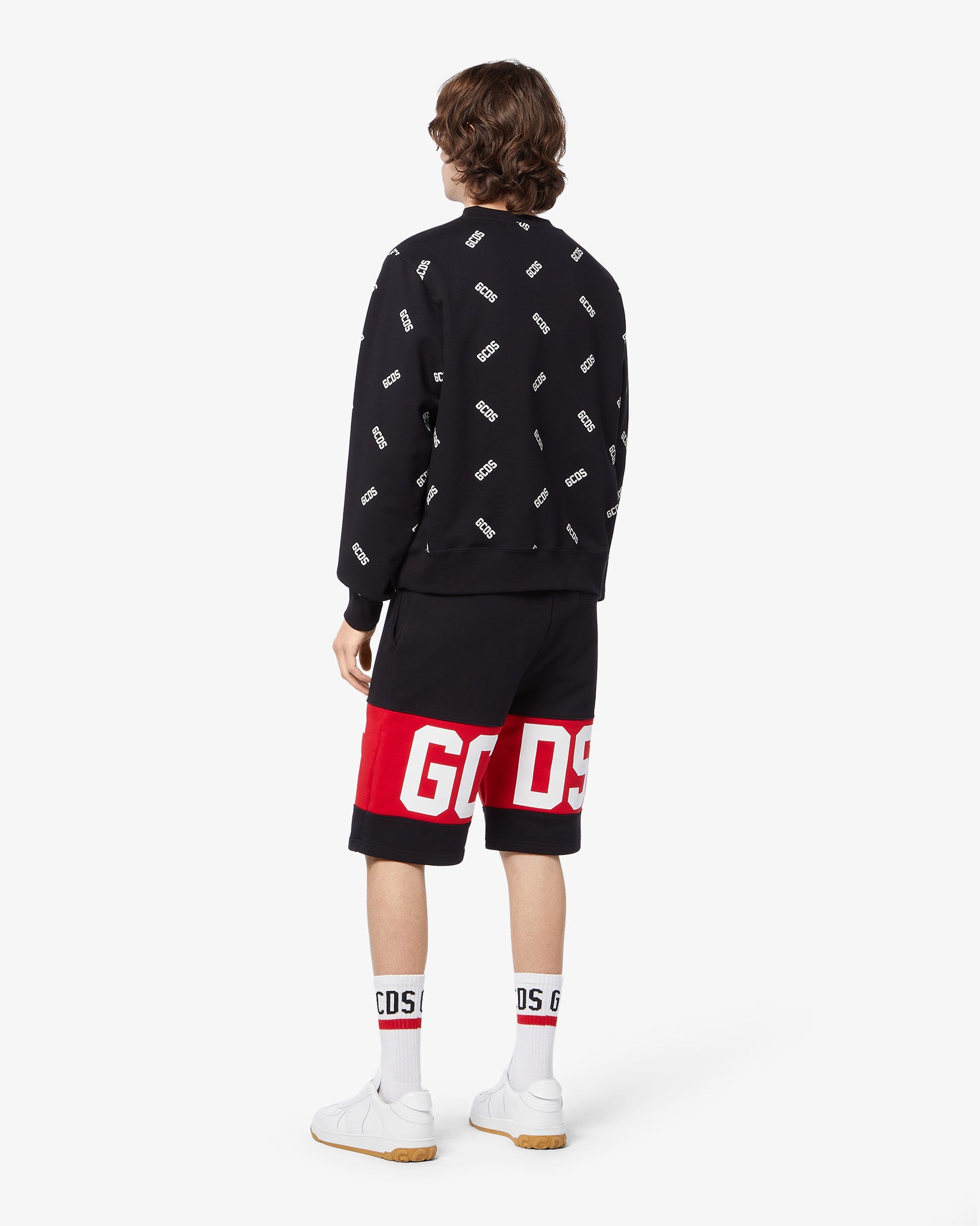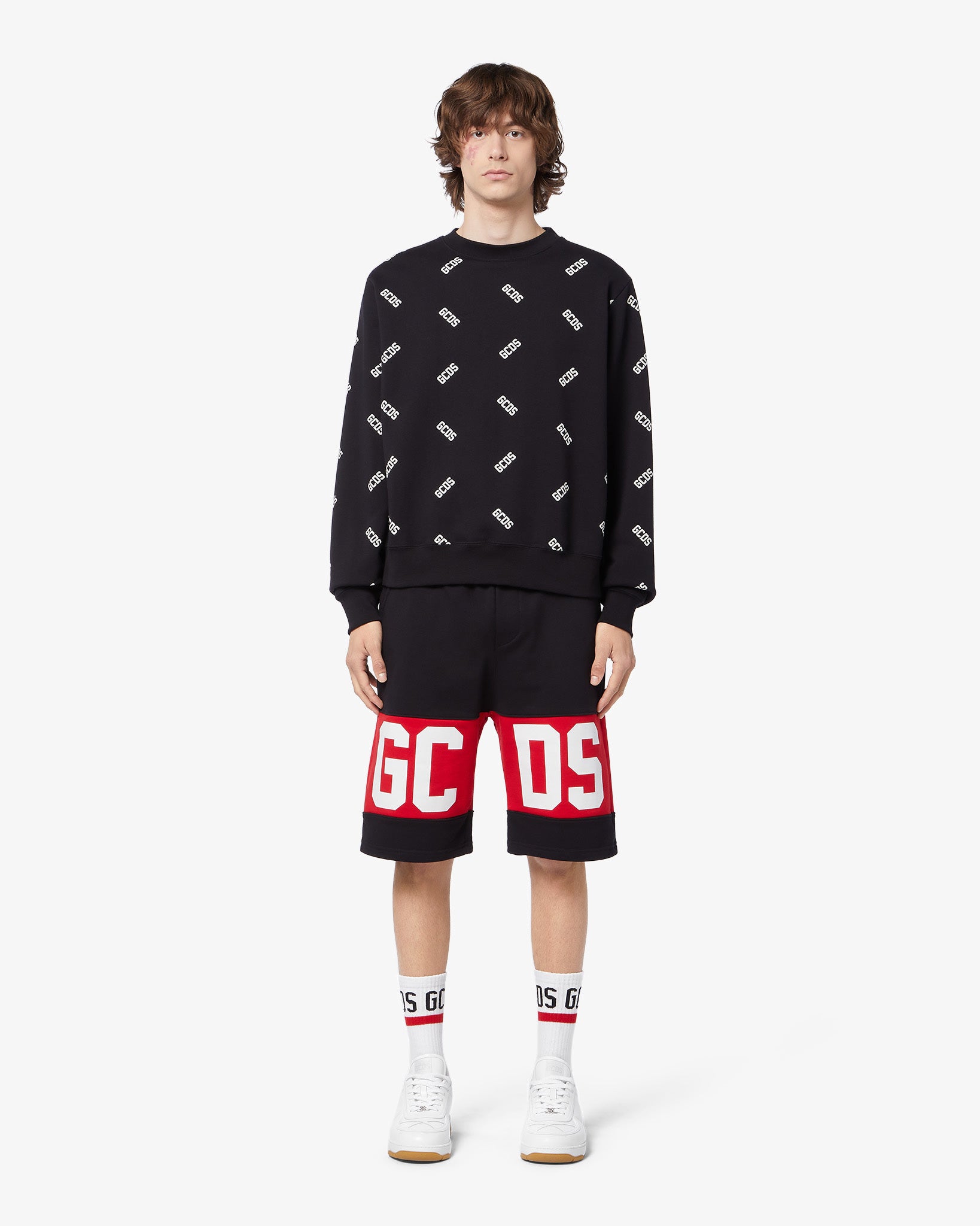 Cotton shorts with contrasting logo band inlaid on the front and back. Slash pockets. Regular fit.