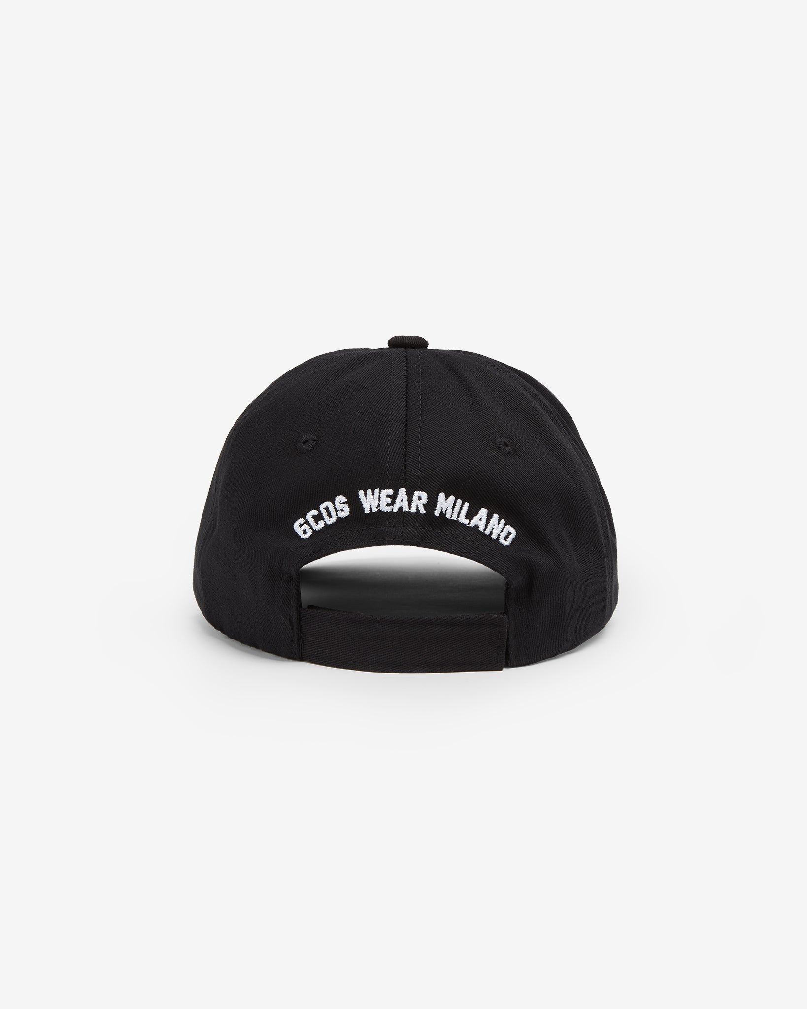 Cotton gabardine baseball cap with logo embroidery on the front. “GCDS Wear Milano” embroidery on the back closure of the cap. Matching lining with grosgrain logo appliqué.