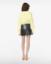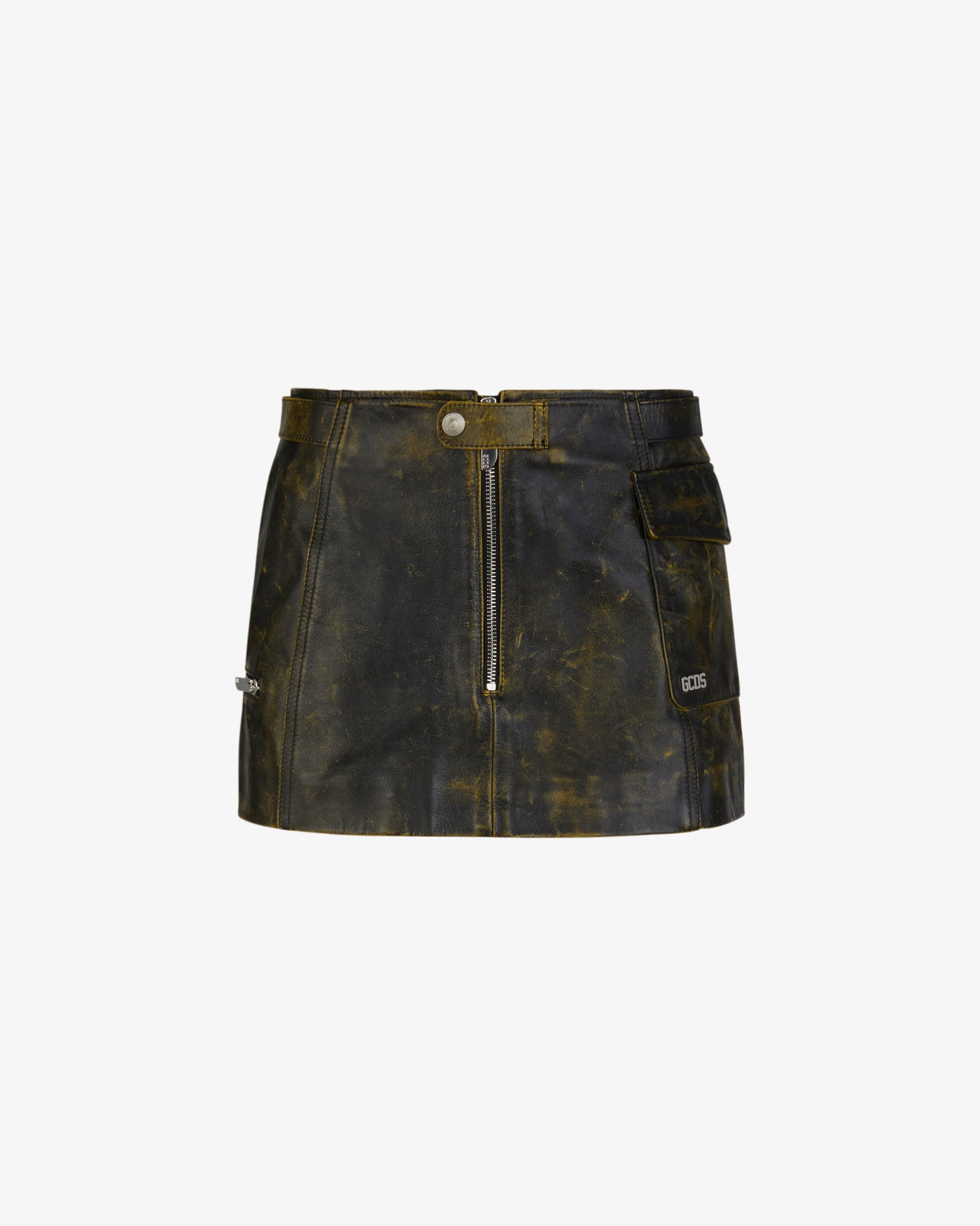 Mini biker skirt in leather treated for a lived-in look effect. Designed with a metallic GCDS detail, a shiny nickel zipper and a patch pocket.