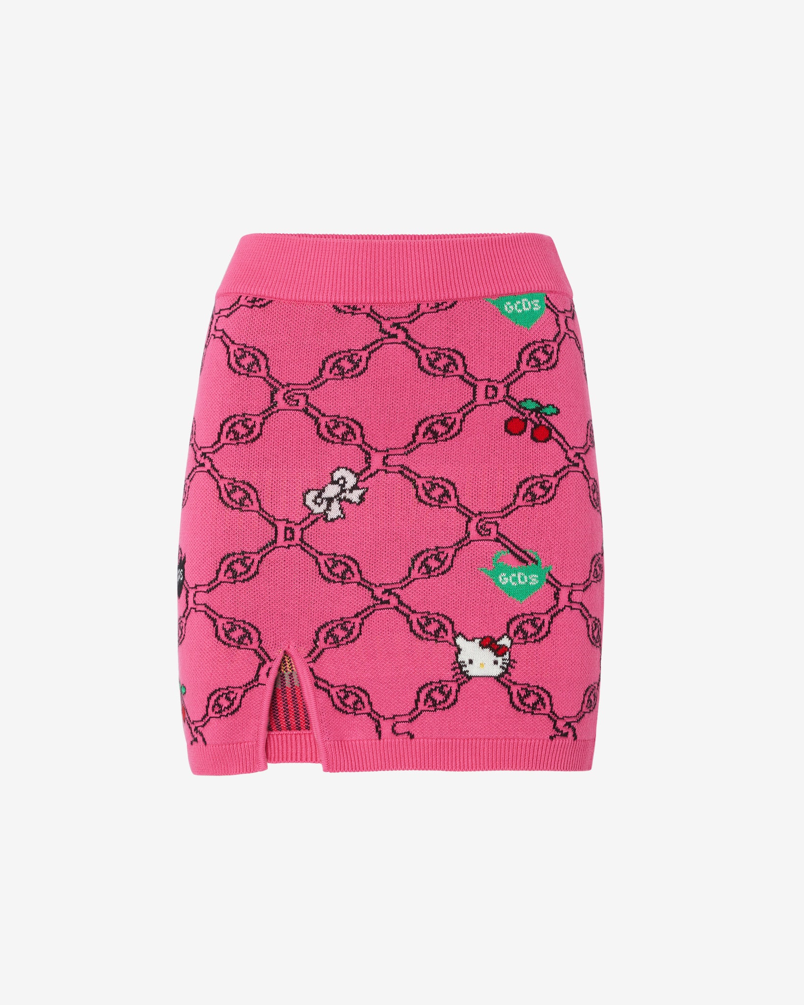 Cotton blend mini skirt with all-over Jacquard detailing. GCDS x Hello Kitty monogram pattern. Side slit.