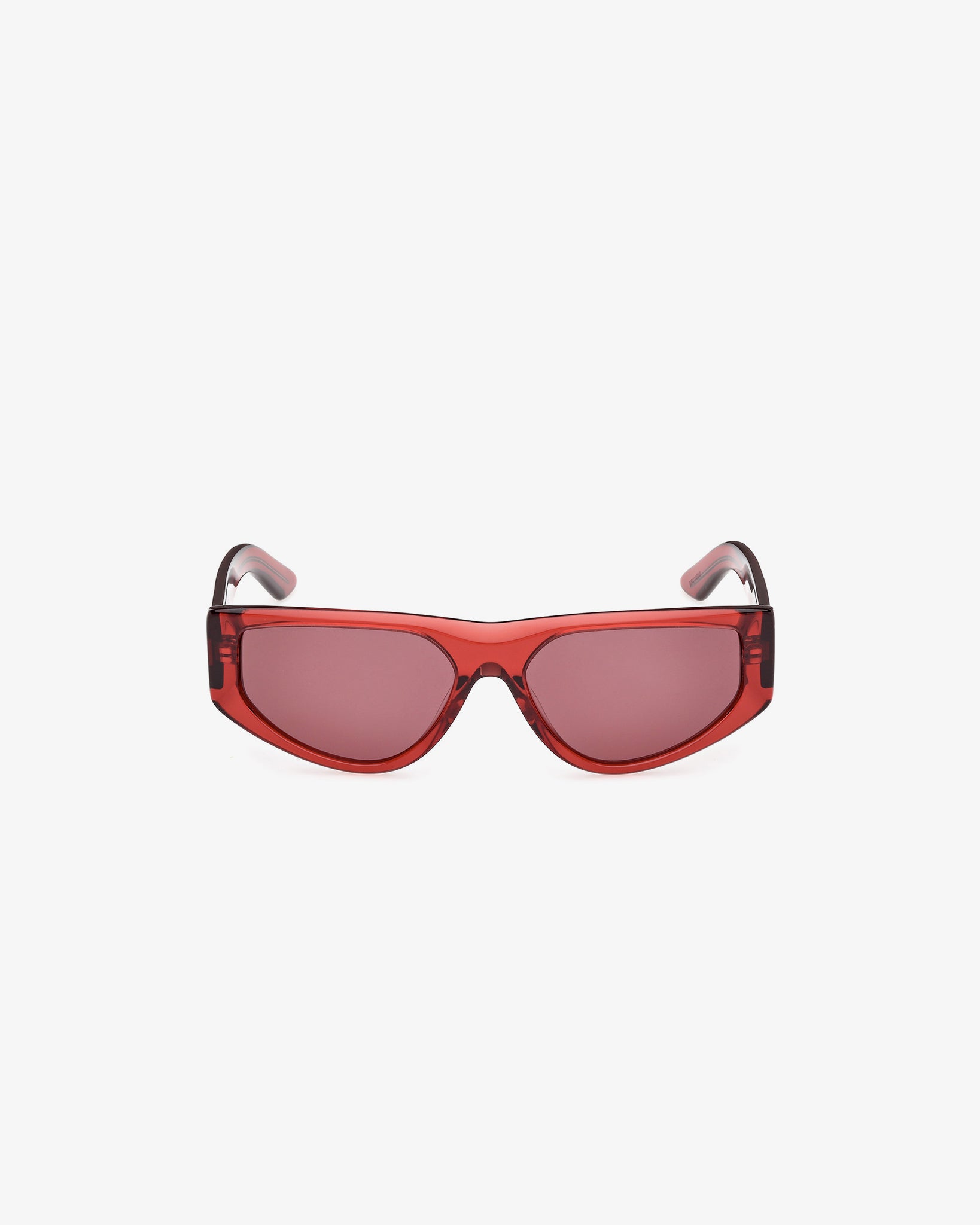 These sunglasses feature a sleek geometric frame, crafted a shiny red acetate frame with bordeaux lenses. The temples showcase a refined metal detail with an engraved GCDS logo.