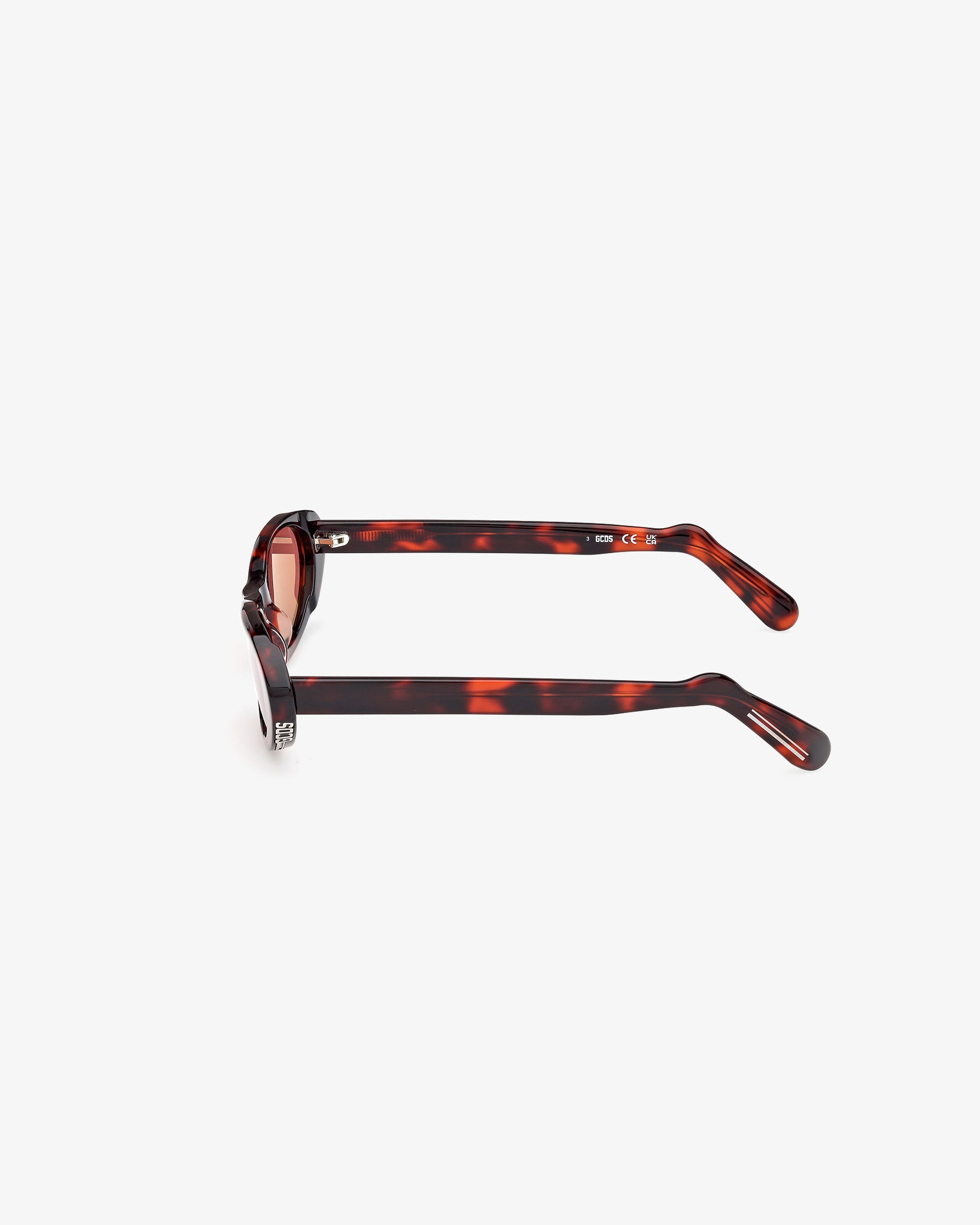 GD0021 is a contemporary cat-eye shape with curved profiles that creating a seamless silhouette and wraps around the face comfortably. Enriched by the really distinctive structure with the GCDS metal logo on the sided profile of the sunglasses.