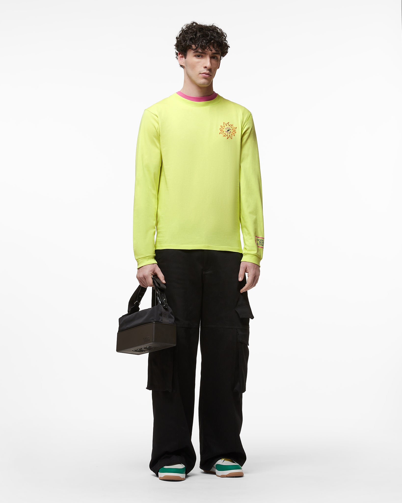 Long-sleeved T-shirt with GCDS logo embroidery and digital print subject "Wirdo" on the back. Regular fit.