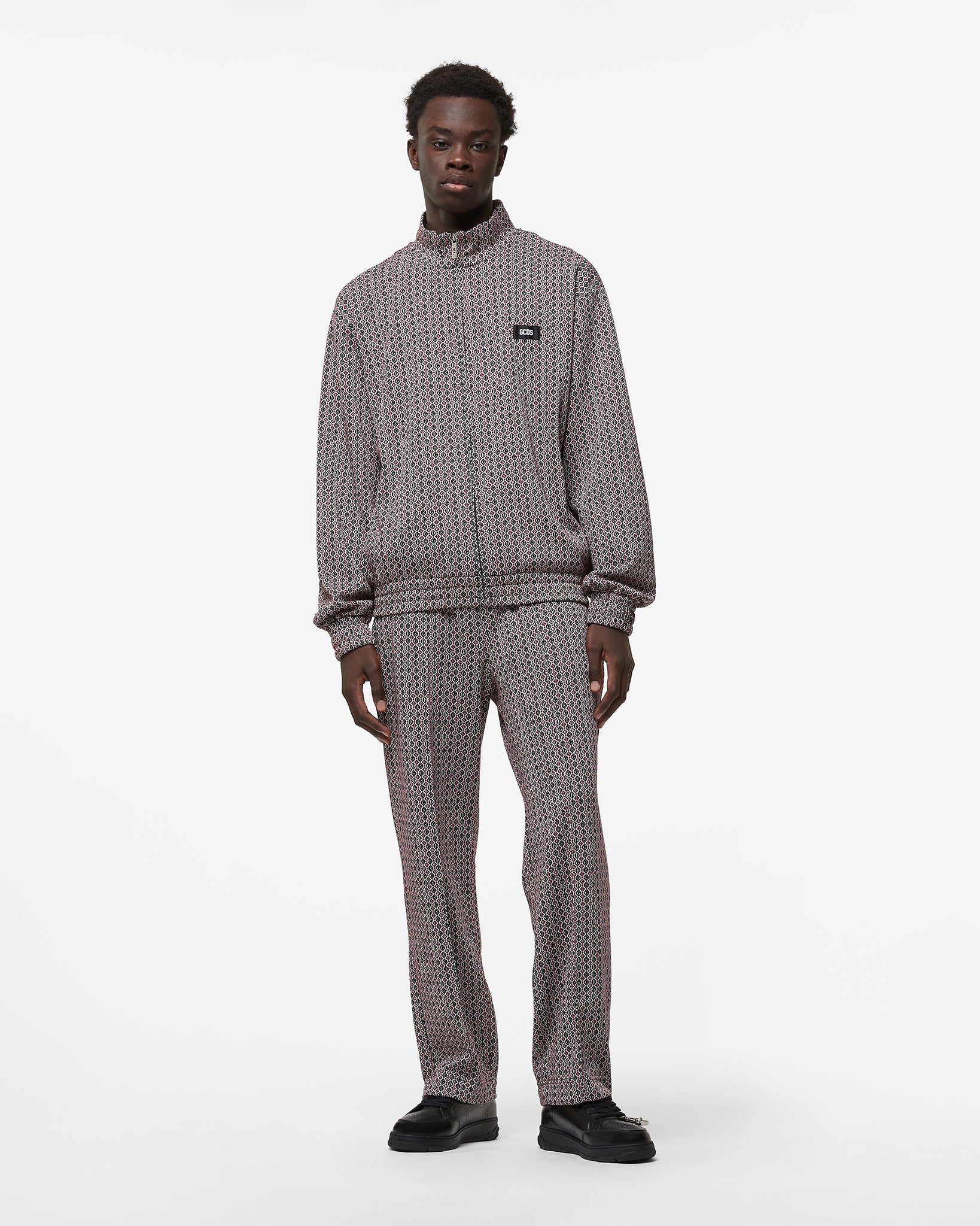 Fabric sweatpants with all-over micro jacquard logo. American-style pockets, elastic waistband. GCDS patch on the back. Relaxed fit.