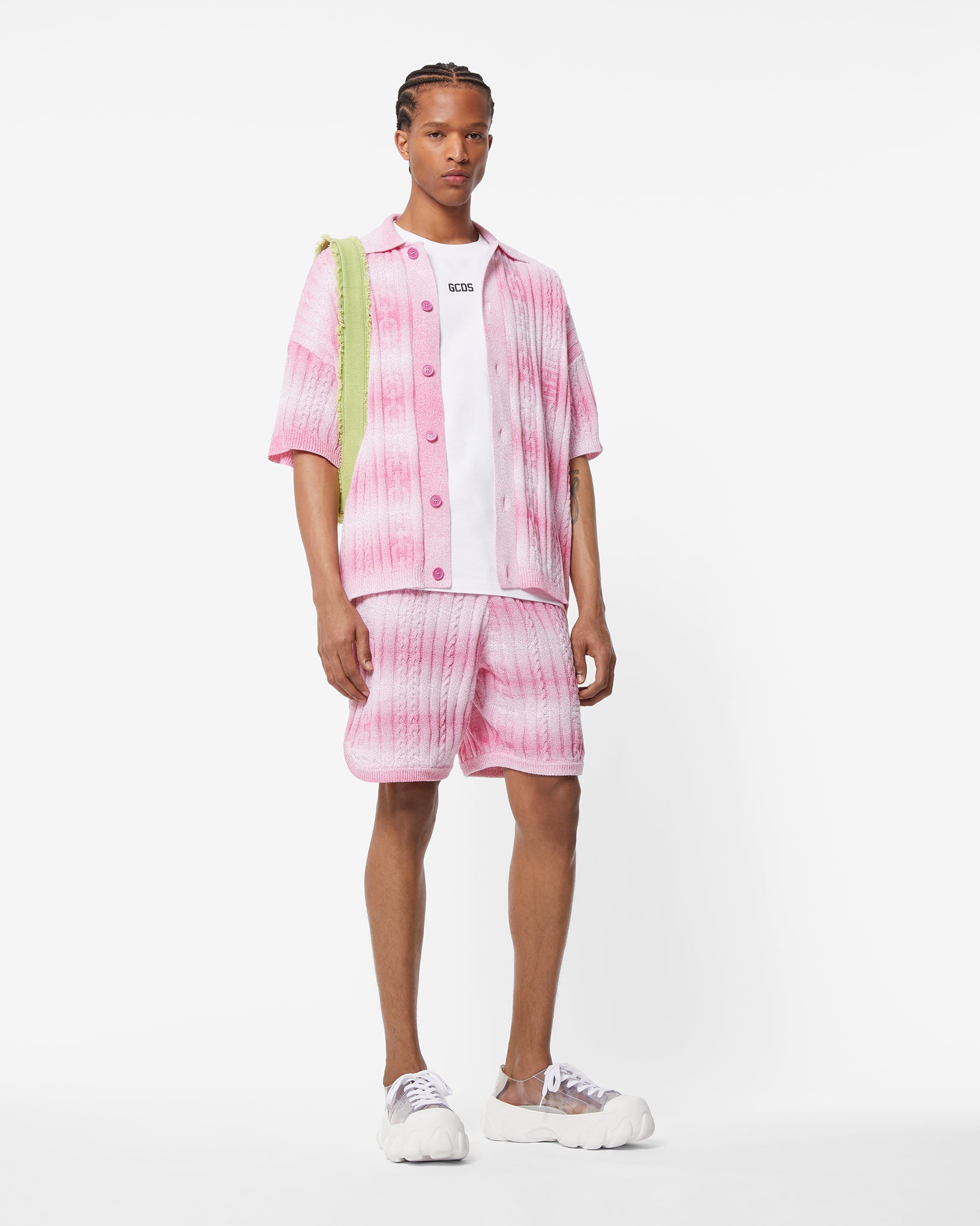 Regular fit cotton knitted Bermuda shorts with faded effect. 3D torchon braids and logo.