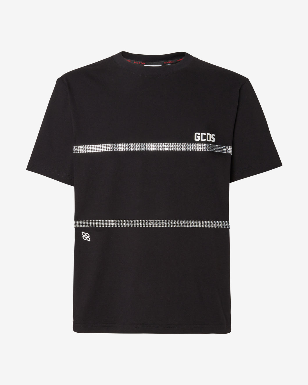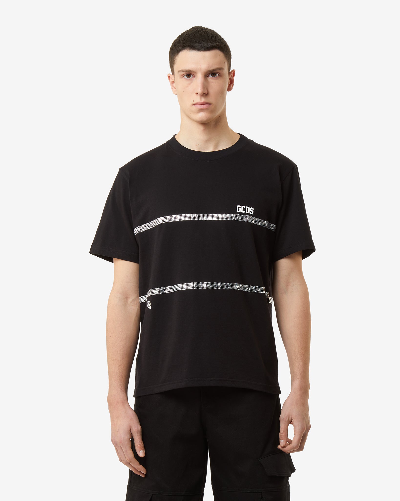 Cotton T-shirt with GCDS logo band artwork and crystal outline. Loose fit.