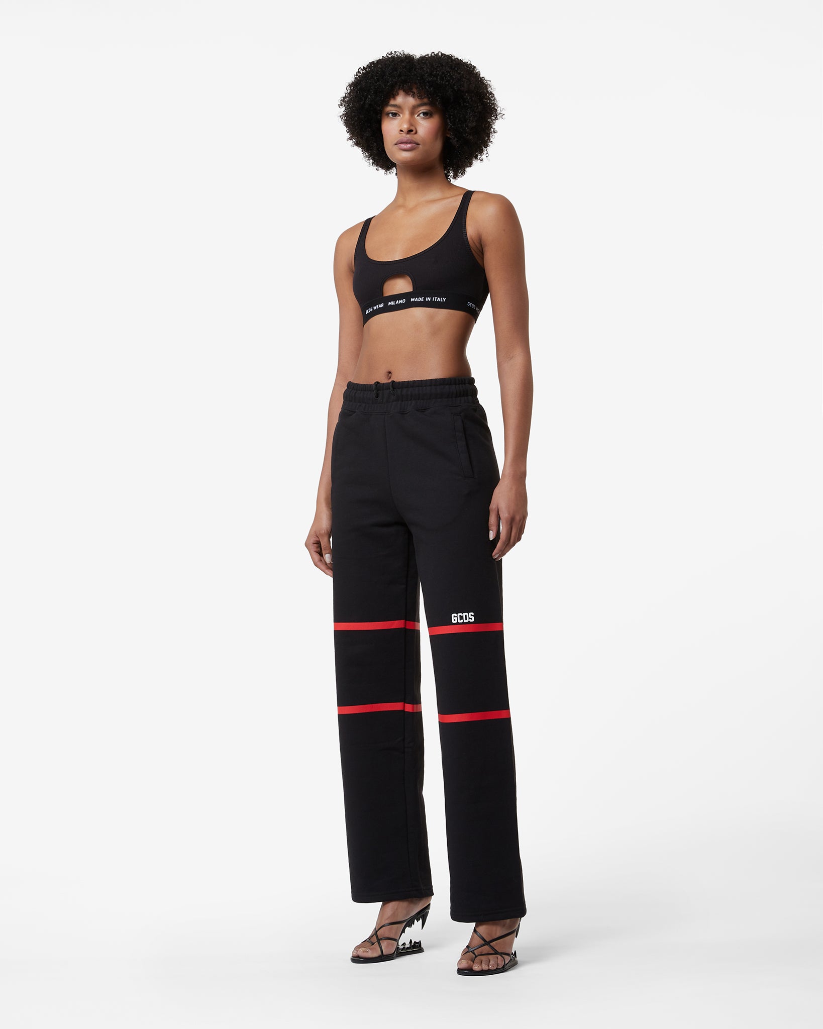 Cotton sweatpants with “GCDS Stripes” print on the front and back. Thick GCDS and “GCDS Bliss” transfer logo print on the front and back. Welt pockets and elastic waistband. Loose fit.